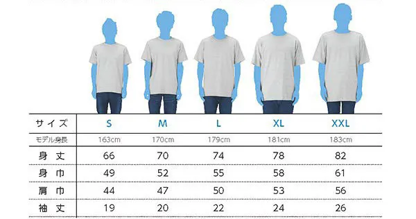 サイズ展開:S・M・L・XL・XXL(各サイズの詳細は以下の表をご確認下さい。)