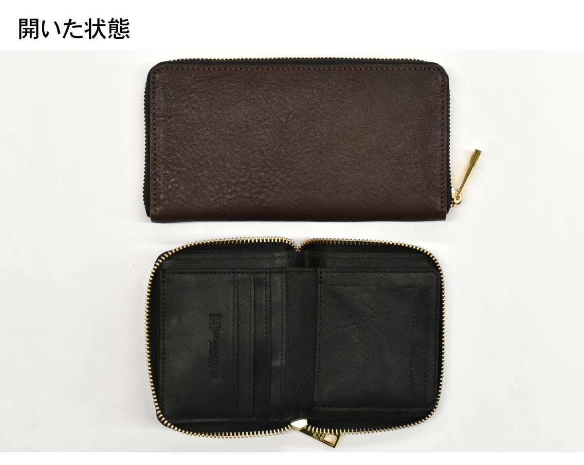 機能:カード収納ポケット×6 / 札入れ×2 / 札仕切り×1 / BOX型小銭入れ×1 / YKK製ファスナー