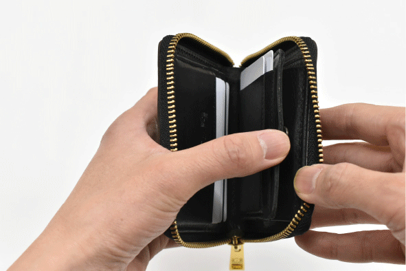 お会計時にも中身は相手側には見られにくく、安心して出し入れが可能です。