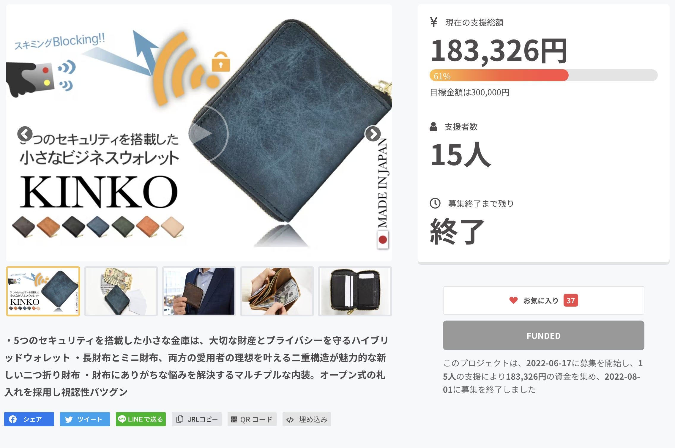 2022/08/02 09:485つのセキュリティを搭載した、小さなビジネスウォレット【KINKO】たくさんのご支援をいただき、無事にプロジェクトを終える事が出来ました。今回も多くの方に共感いただき、嬉しい限りです。日々新しいプロダクトが発表される中、当プロジェクトへ期待を持ってご支援いただいたものと、スタッフ一同感謝の気持ちで一杯です。誠にありがとうございます。【配送について】ご登録の住所に変更がございましたら、8/5までにお手数ですが「実行者へ問い合わせ」よりご連絡ください。【お盆期間中のお休みのお知らせ】8月11日(祝) 〜 8月16日(火)の間はお休みとさせていただきます。その間の受注/出荷/お問い合わせ対応は8/17(水)より順次ご対応いたします。Hallelujah inc. もっと見る