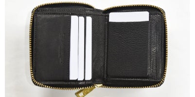 一般的な二つ折り財布では鞄の中で中身が散らばりそのまま紛失してしまうということも。 鞄の中に入れても中身が散らばらないよう3面がしっかり閉じたラウンドファスナー式にすることで大切な中身を守ります。