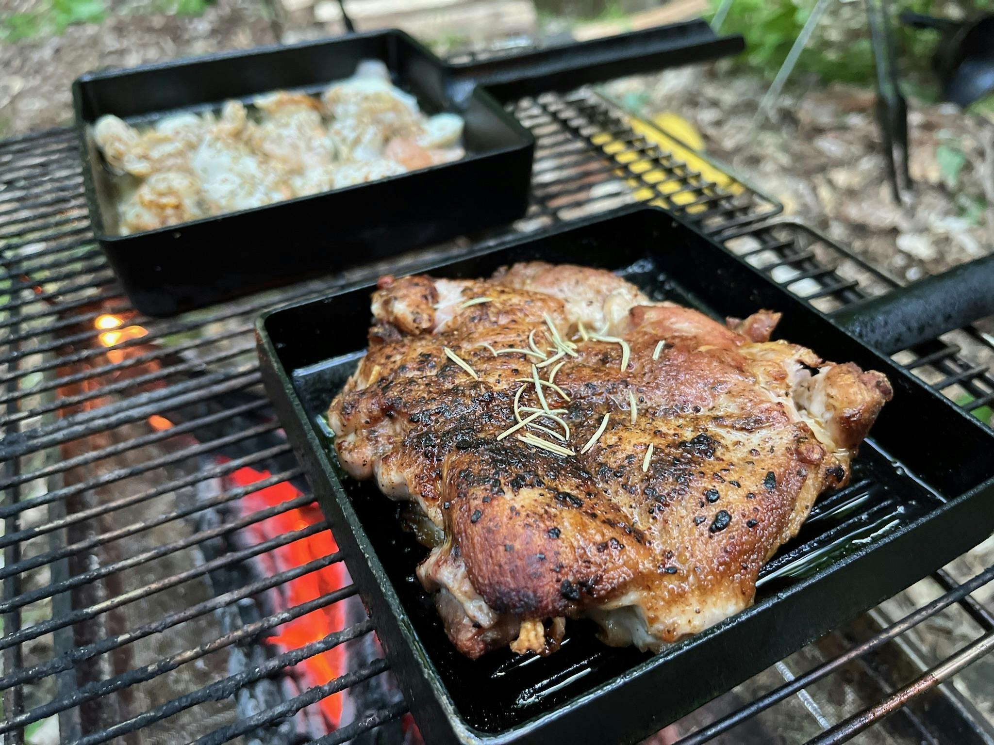 そのまま炭や焚き火の中に豪快に突っ込めるワイルドなアイテムです。
