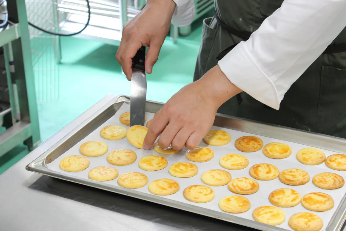 「食べたときの触感(硬すぎず、口どけなめらか)をどう作るか、生地の厚さやクリームとのバランス等がまず一番にこだわった点です。口にした時の丁度良い硬さを実現するために、生地の厚さ、サイズなど数多く試作しました。