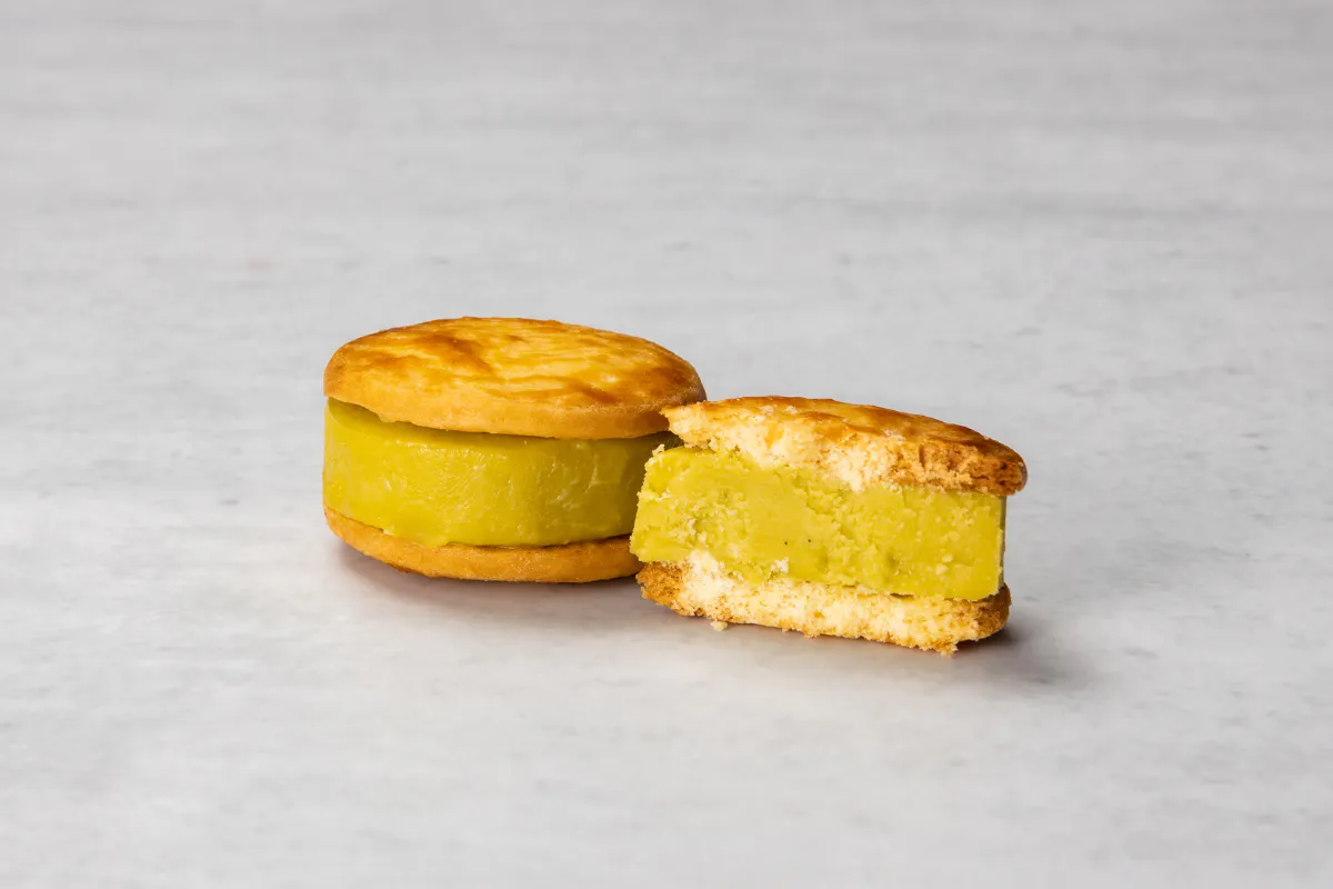 バタークリームを挟んだ定番の一品。甘さ控えめで飽きの来ないクリームに仕上げながらも、バターの香りや風味をしっかりと楽しめる、深みのある味わい味となっています。