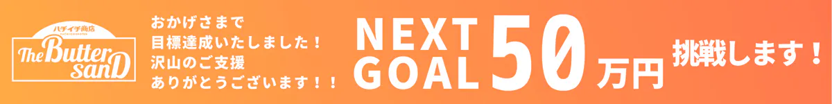 2022/08/18 20:51お世話になっております。ハチイチ商店の佐藤です。ご報告が遅くなってしまいましたが、『The Butter Sand(ザ・バターサンド)福島発!地元こだわり食材と融合』のプロジェクトは、8月14日を持って終了いたしました!結果としては、目標金額に対し221%の達成率(ご支援金額:443,440円)で、無事終えることができました。ご支援下さった皆様、誠にありがとうございました!!プロジェクト開始前は不安しかありませんでしたが、皆様のご支援により、当初の目標を達成することができました。また、プロジェクト期間中には地元の新聞社や、ラジオに取り上げて頂くなどの経験をすることができました。本当に感謝しかございません!この度は、本当にありがとうございました!リターンの発送について今回、ご支援頂いた皆様へのリターンの発送は、8月下旬から順次発送いたします。(只今、絶賛製造中です!)明確な発送開始日が分かり次第、活動報告にてご報告いたしますので、発送まで今しばらくお待ちくださいませ。引き続き、ハチイチ商店をよろしくお願いいたします! もっと見る