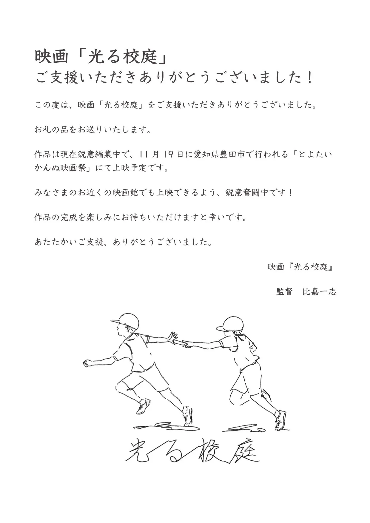 ・「読んで応援するコース」の皆様へ、撮影台本
