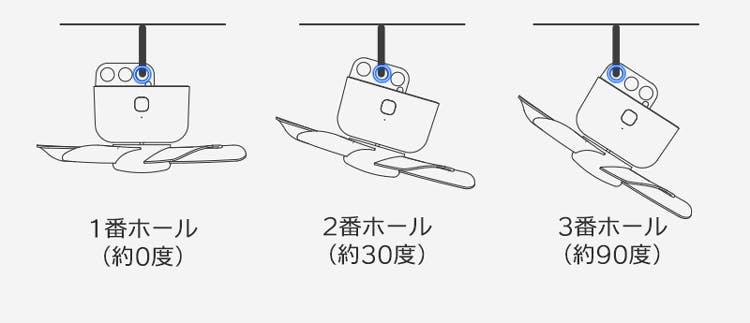 本体上部に3つのホールがある構造で、天井に吊るして使えるシーリングファンから壁にかけて使える壁掛け扇風機としても活用できます。