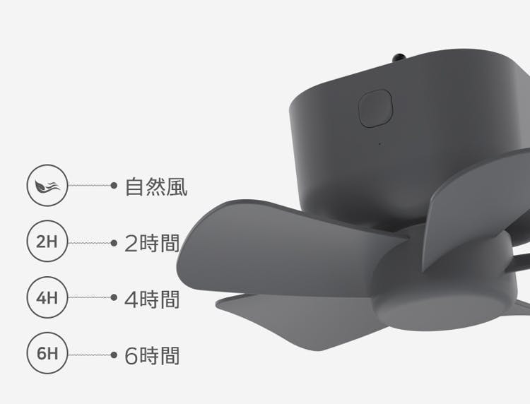 「SOLEUS AIR キャンプ用シーリングファン」は最大6時間タイマー設定が可能です。
