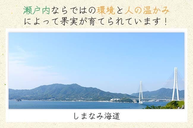 生産地である大三島は、瀬戸内海しまなみ海道のほぼ中央に位置し、「おいしい」みかんの産地として知られています。