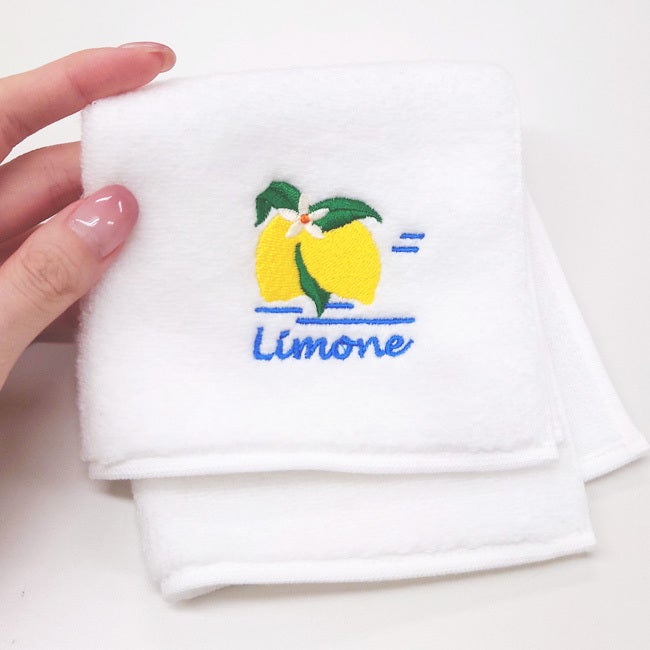 ”オリジナルデザインのレモン刺繍 タオルハンカチ”