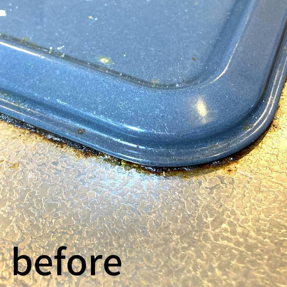 ガス台周りに長くこびりついた油汚れも、スプレー後ブラシでこすって、きれいに汚れを落とすことができました。