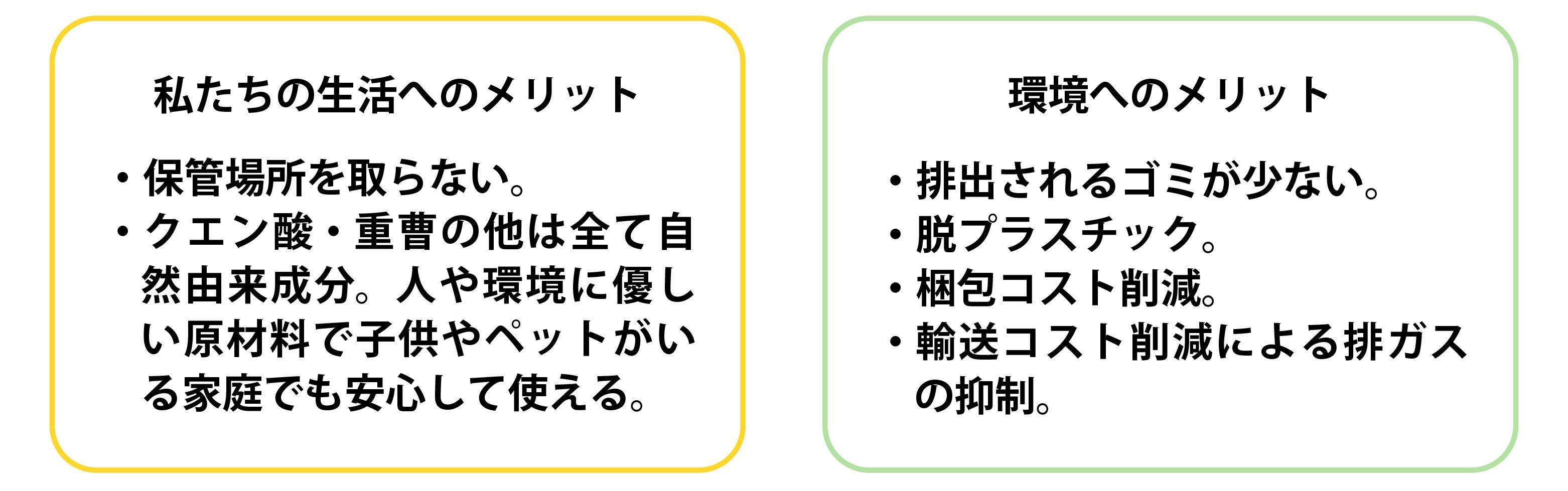 水が含まれていないことのメリットはそれだけにとどまらず、プラスチック容器削減、梱包材・輸送コストの削減など、環境への配慮まで広がります。