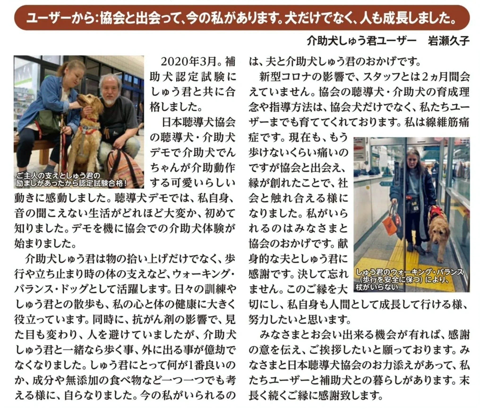 ■日本聴導犬協会 聴導犬・介助犬ユーザーからの応援メッセージ: