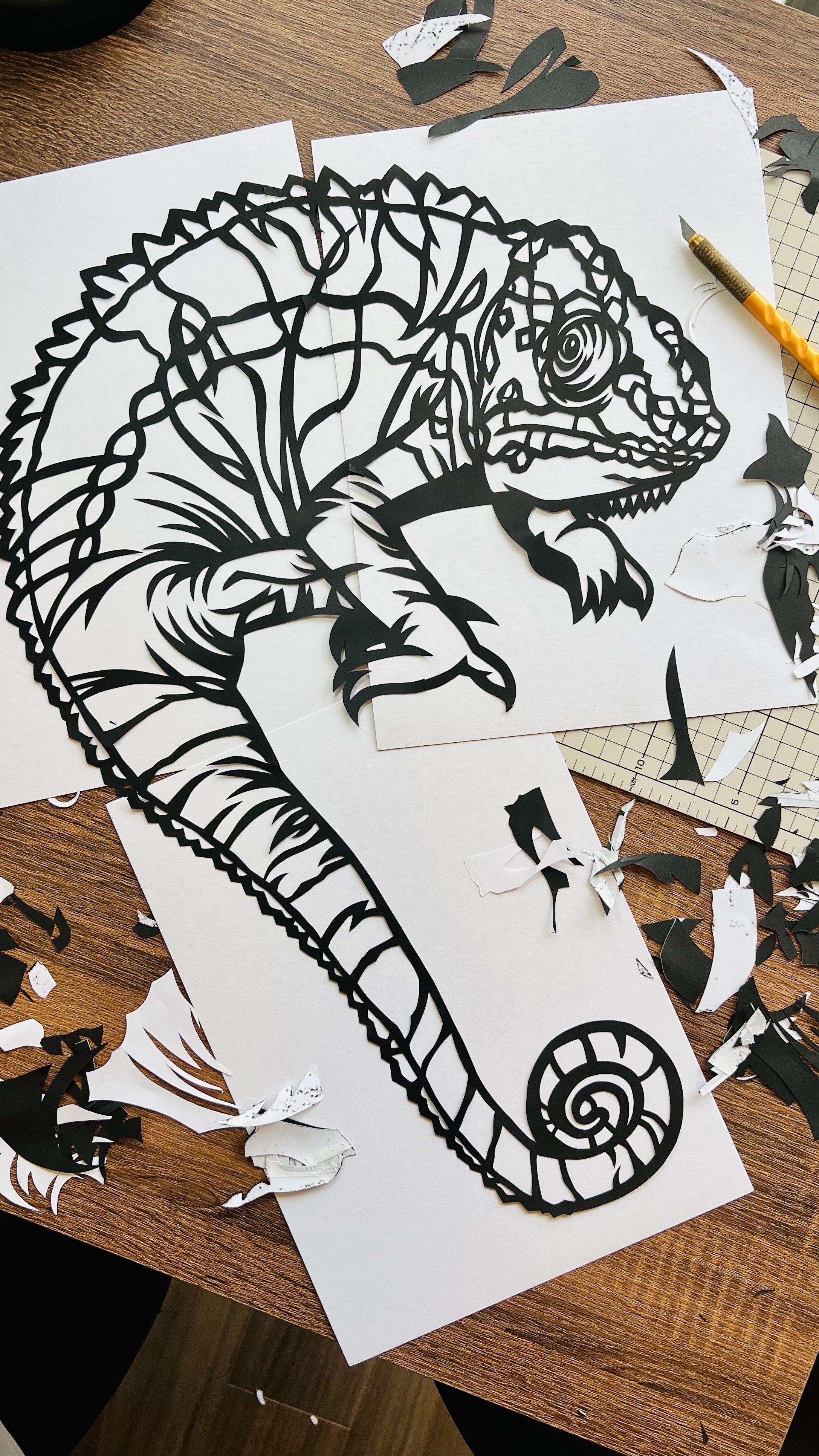 そのちょっとしたご報告として、先日A2サイズのカメレオンが切り終わりました。