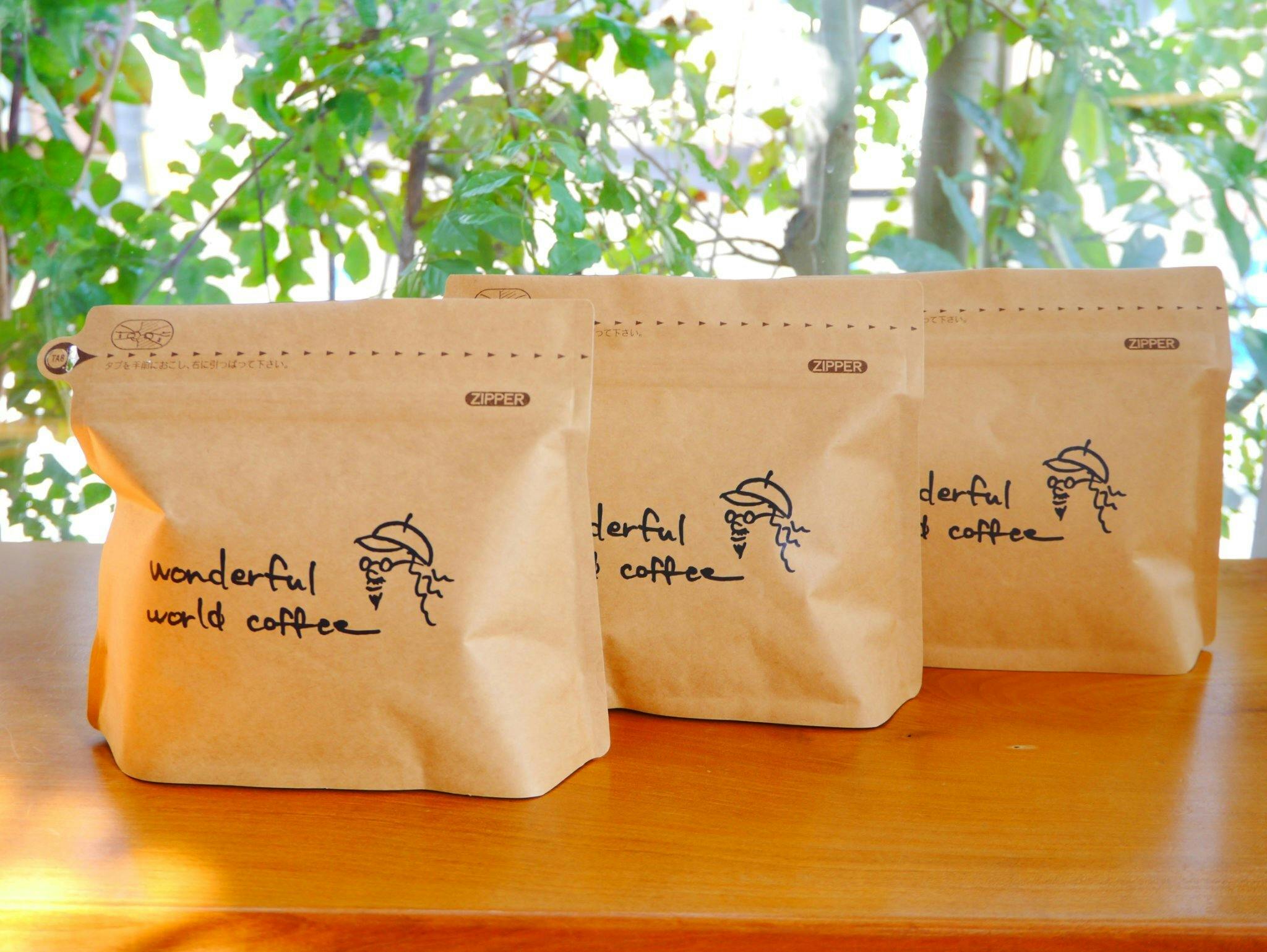 WONDERFUL WORLD 珈琲のコーヒー豆たちは、個々の豆が持つ風味特性が感じられコーヒー本来の甘さ心地良い酸味をより楽しんでもらえます。