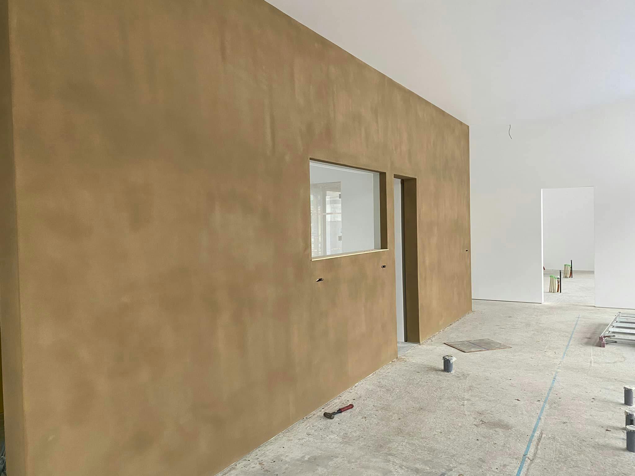 新店舗の正面の壁には、お店で抽出したエスプレッソを使った塗壁になっていますよ。