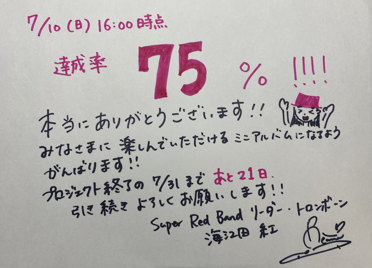 クラウドファンディング、「Tb海江田紅率いるSuper Red Bandミニアルバム制作プロジェクト!」スタートから1週間が経過しました。
