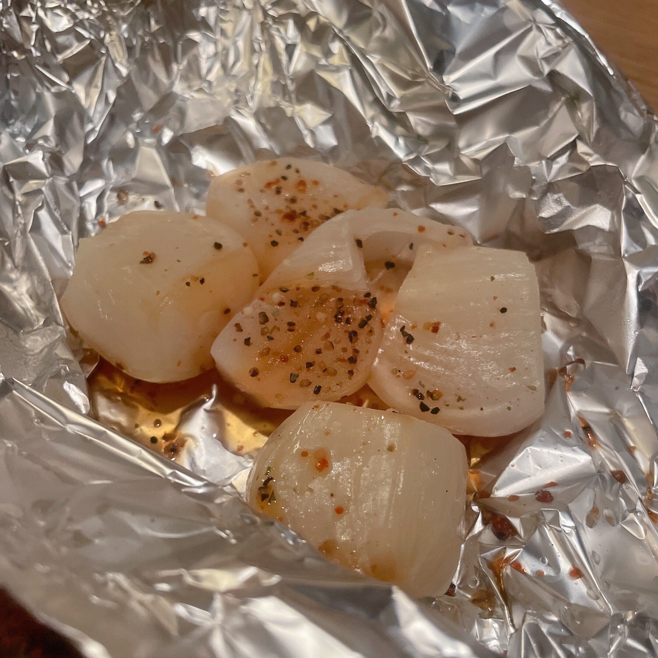 皮をむかずにお塩をまぶしてグリルやコンロでホイル焼きに。(皮をむいてもOK)