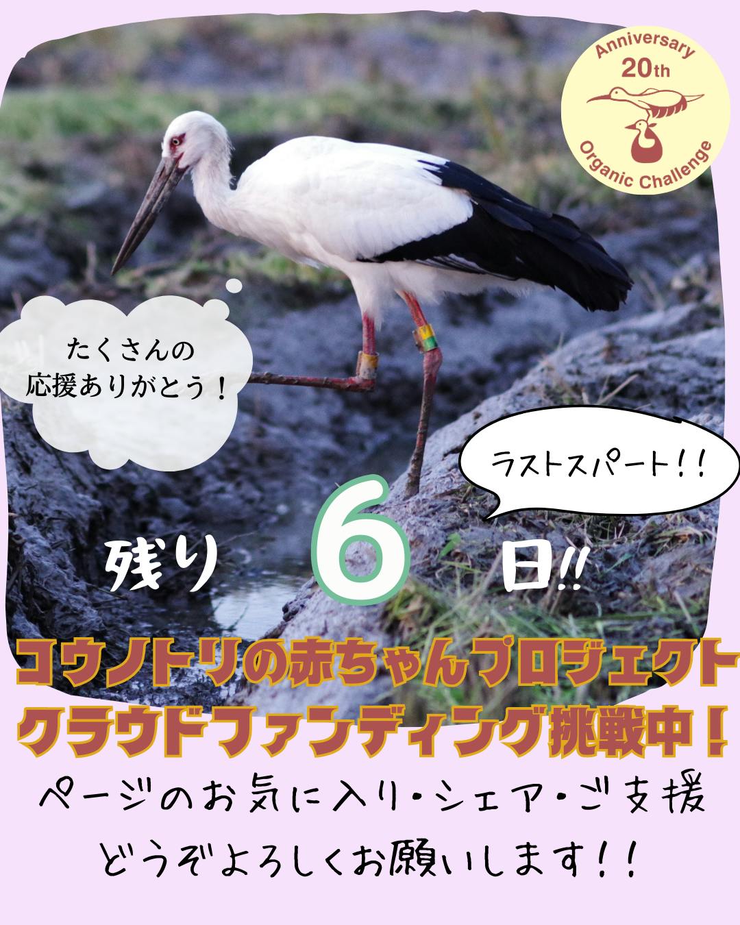 2023/05/02 11:30こんにちは。ページを閲覧いただき、ありがとうございます♪『コウノトリの赤ちゃんプロジェクト』もいよいよ終盤に差し掛かり、残すところ、あと6日間となりました。数々のご支援、本当にありがとうございます!さて、最近のコウノトリの様子ですが、5月はコウノトリの子育て最盛期、ということでコウノトリの会が運営する『コウノトリ市民科学』のHPにもたくさんの目撃情報や写真がアップされています。https://stork.diasjp.net/金沢大地の田んぼ、そして、第一人口巣塔がある石川県津幡町のコウノトリの様子もカメラにとらえられています湿地でエサを探している、コウノトリ(オス)の様子。コウノトリは肉食の鳥。数あるえさの中でも、どじょうやナマズが大好物のようで、生態系が豊かで、色々な動植物が住んでいる、金沢大地の田んぼをえさ場として、飛来してきてくれているようです:)うれしいことですね!ちなみに、コウノトリの子育て中はデリケートな時期のため、近づいて驚かすことを避けようと、この距離でいつも観察しています。かなり遠いですよね~(笑)あと、少しの期間ですが、シェア・ご支援・コメント、などで応援していただけますと、大変うれしいです!よろしくお願いします! もっと見る
