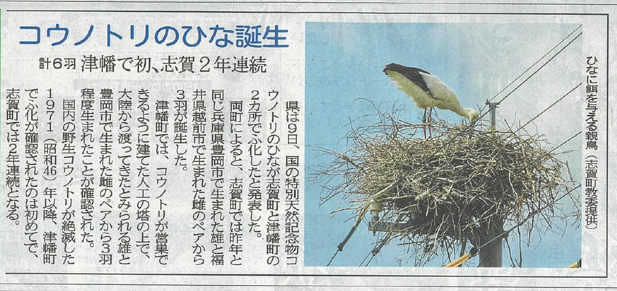 【朗報】コウノトリのひな誕生が「津端塔」にて発表されました!
