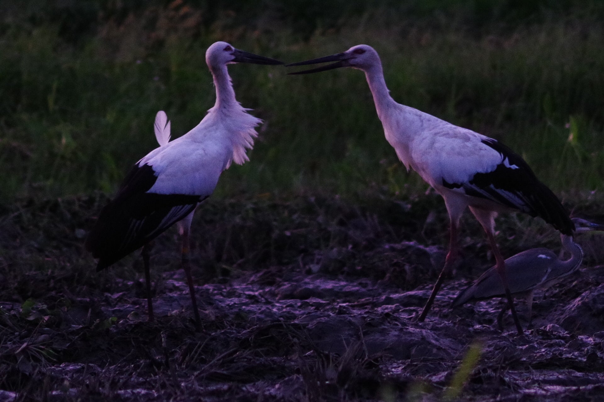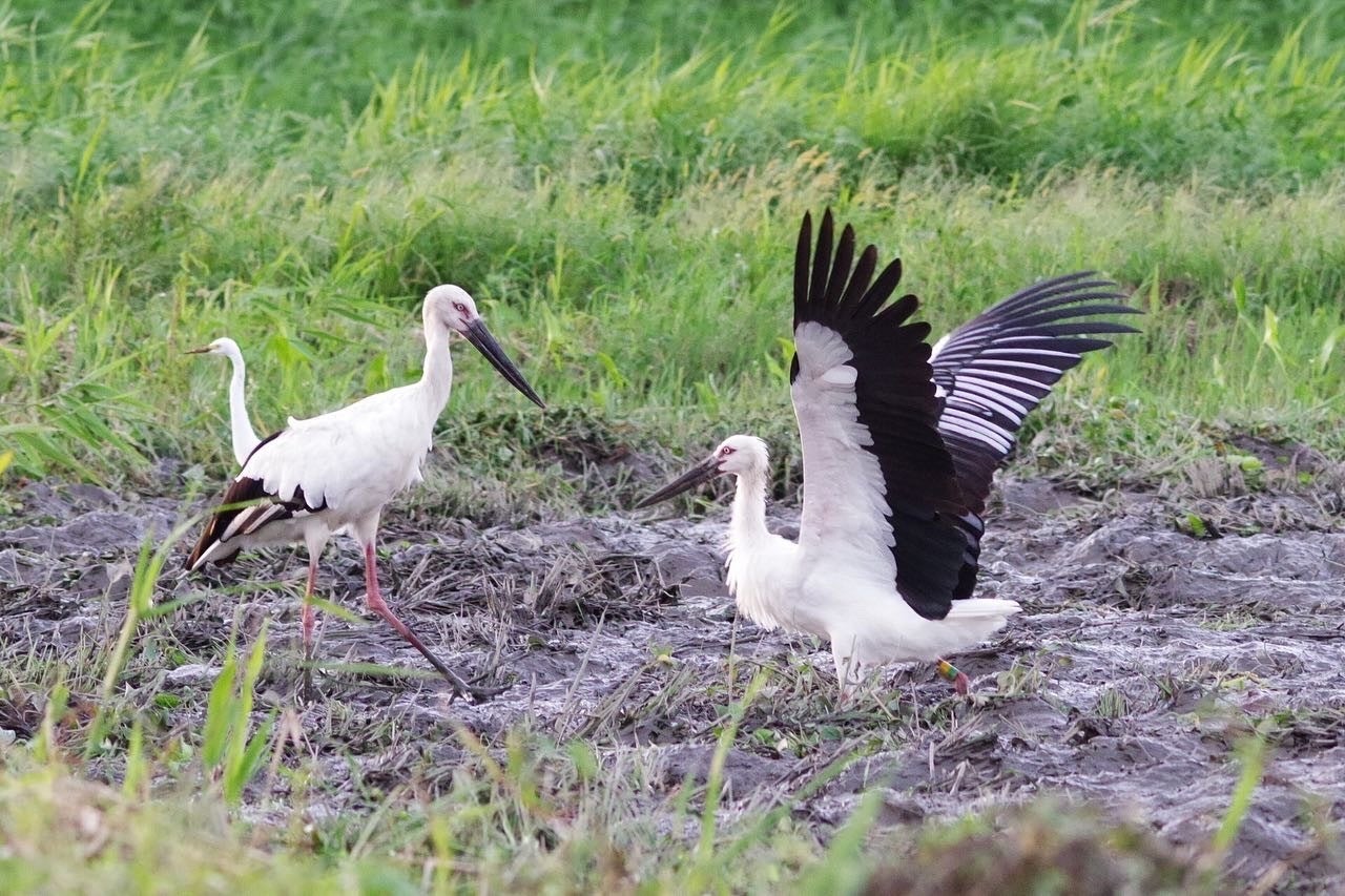 残念ながら雛の誕生とはなりませんでしたが、日本コウノトリの会の方によると、1棟目の人口巣塔(津幡塔)の近くには新たに千葉生まれと兵庫生まれの若いカップルが飛来しているようです。