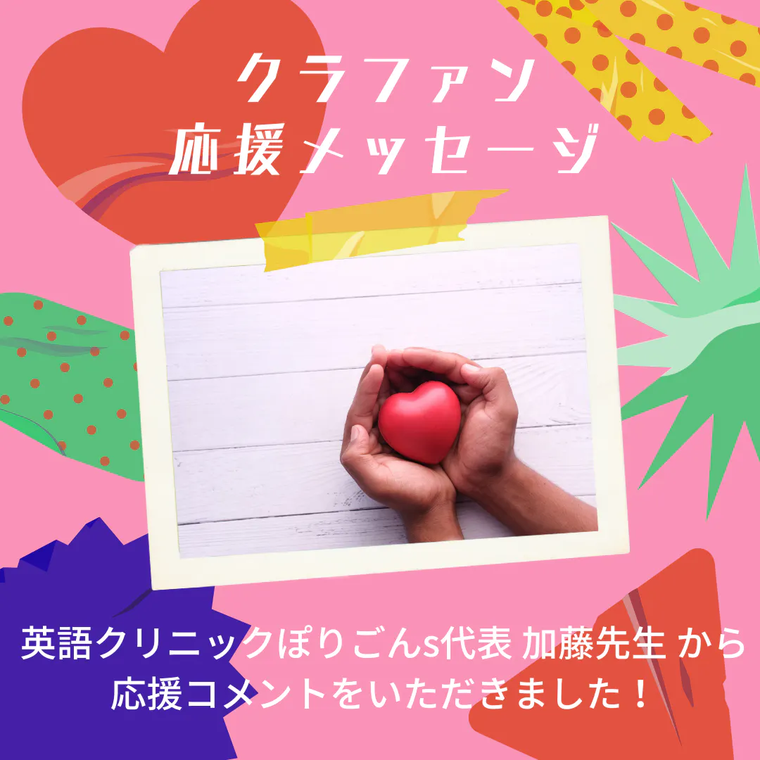 英語クリニックぽりごんs代表 加藤佳子先生 から応援メッセージをいただきました。