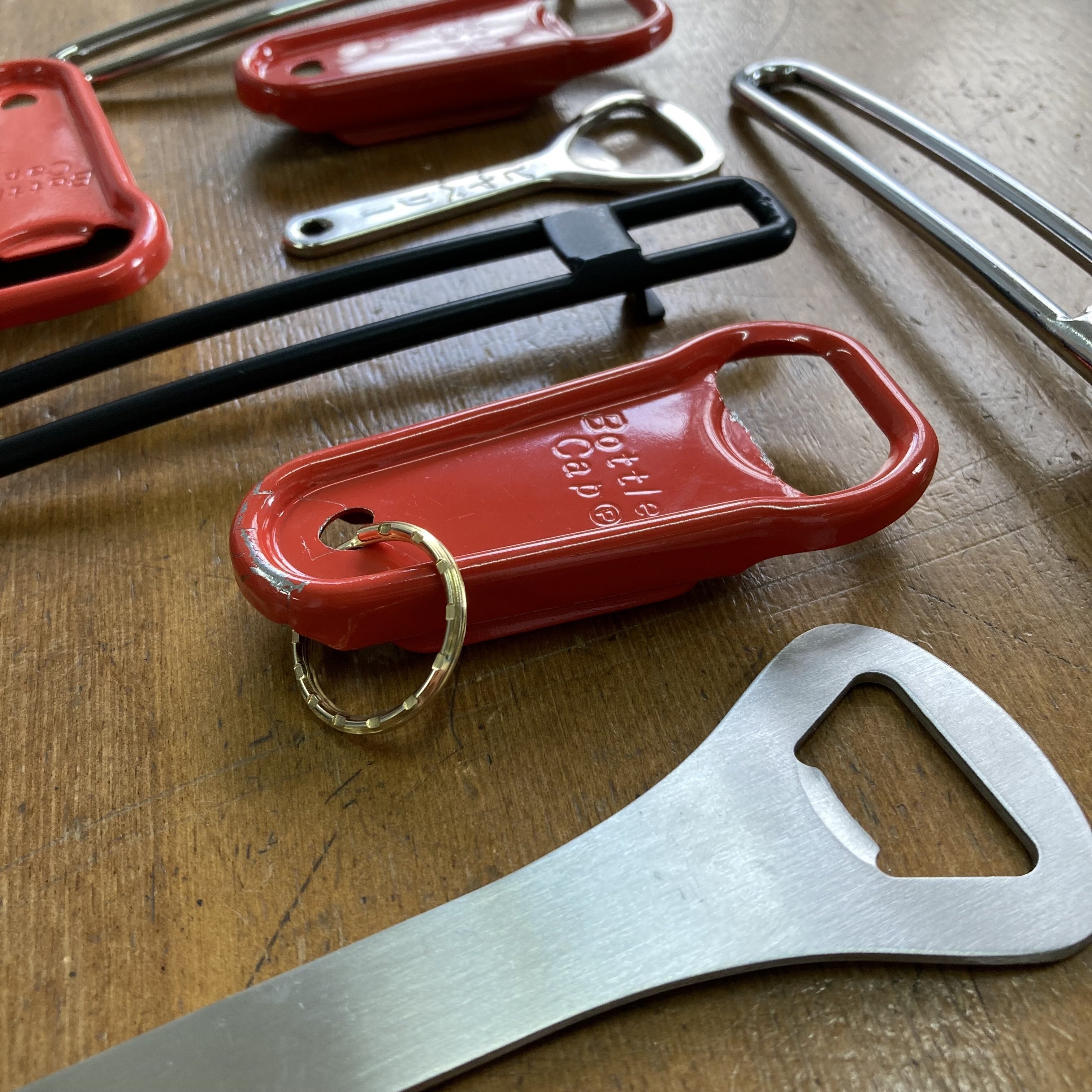 真ん中にあるのは、ぼくが最近持ち歩いているもの。この会社で長く作っているロングセラー栓抜きです。