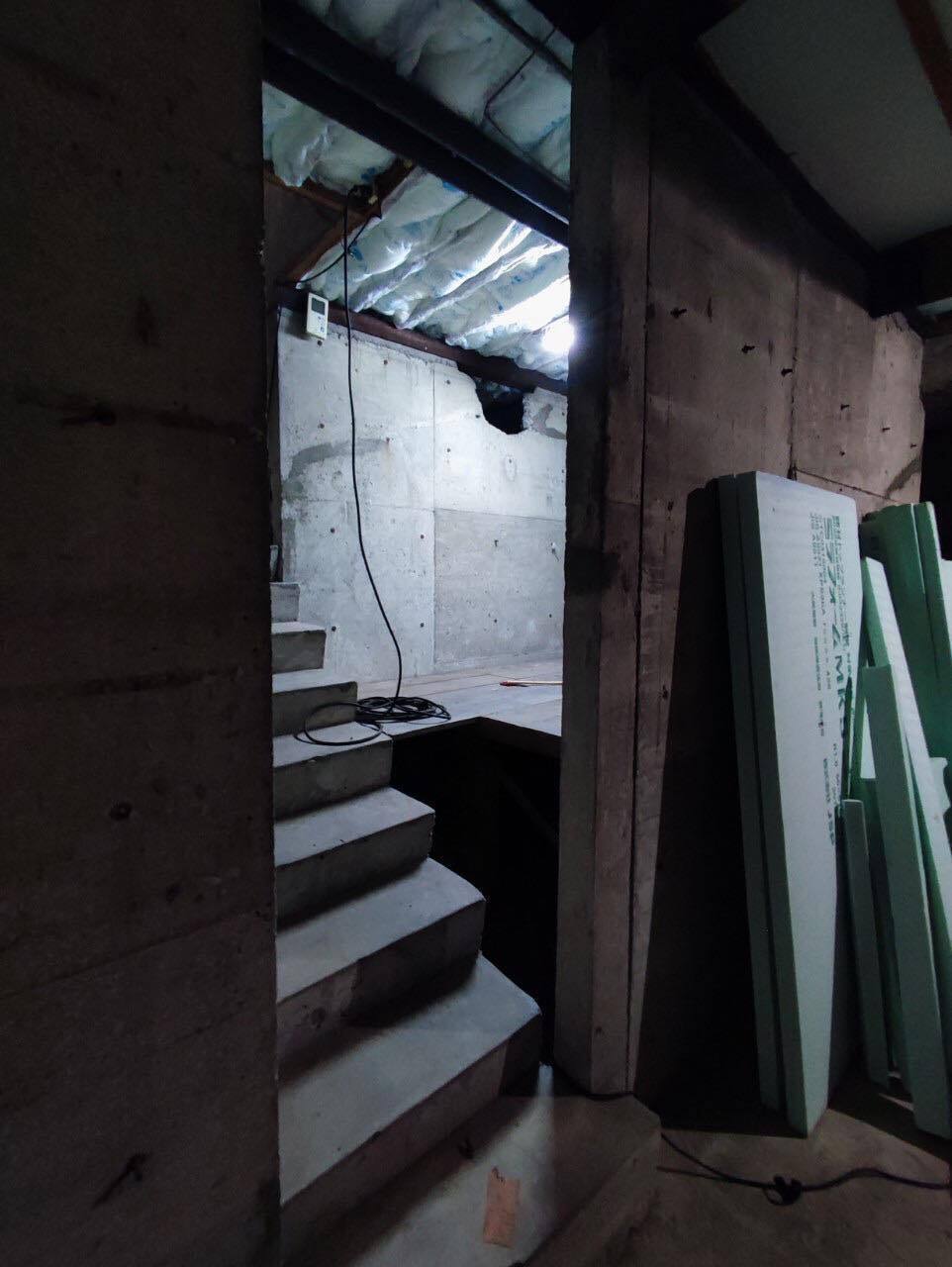 下の写真のように、地下へ行く階段の脇のスペースにサウナ室を作ります。