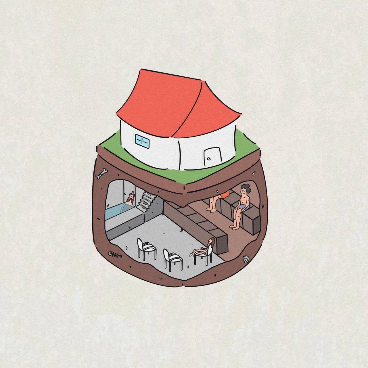 僕たちは、宿の地下にまるで秘密基地のようなサウナを作っていきます。