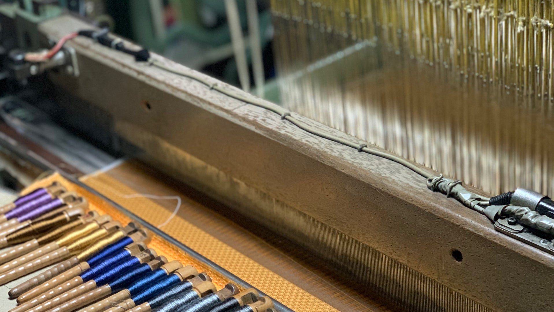 京都 西陣織の機場。シャクノネのネクタイ生地は、ゆっくりと力強く織られたシルク(京都西陣織、山梨の甲斐絹)を使用しています。