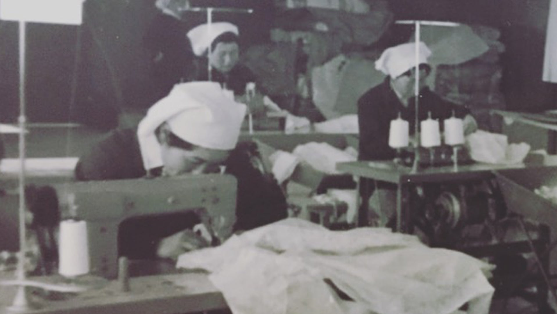 約54年前の祖母の写真。創業者がミシンを踏む唯一の写真です。