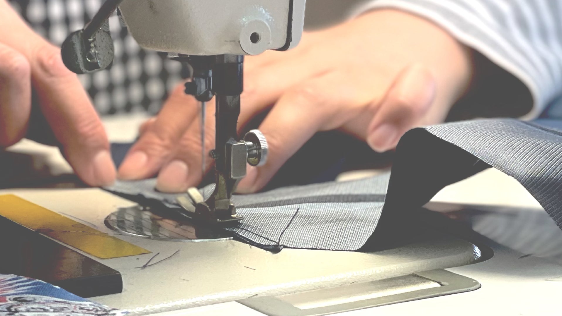 ③一本ずつ縫い合わせるミシンの手さばきをクローズアップ
