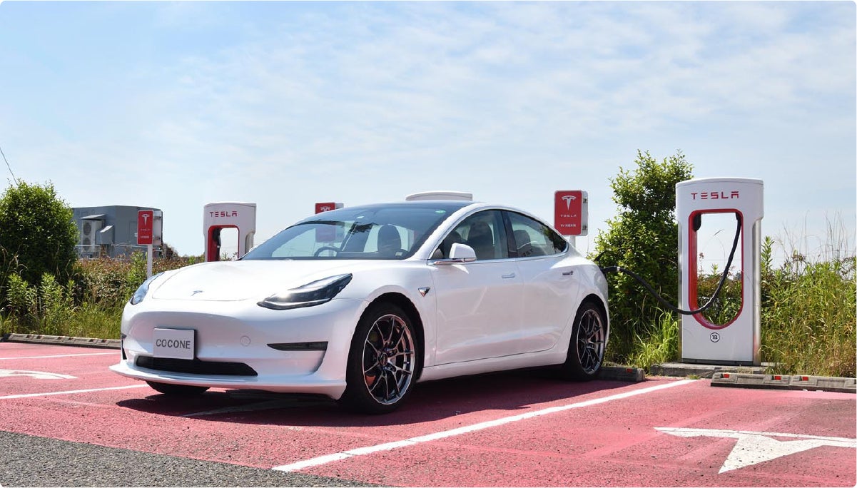 『テスラモデル3』は5人乗りのミドルセダンで、車格としてはレクサスISクラスと同等、自動運転システム・オートパイロットを装備し高速道路の長距離運転でも疲れ知らずです。このEVを普通のレンタカー並みの価格でご提供させていただくのが「COCONEXT」です。