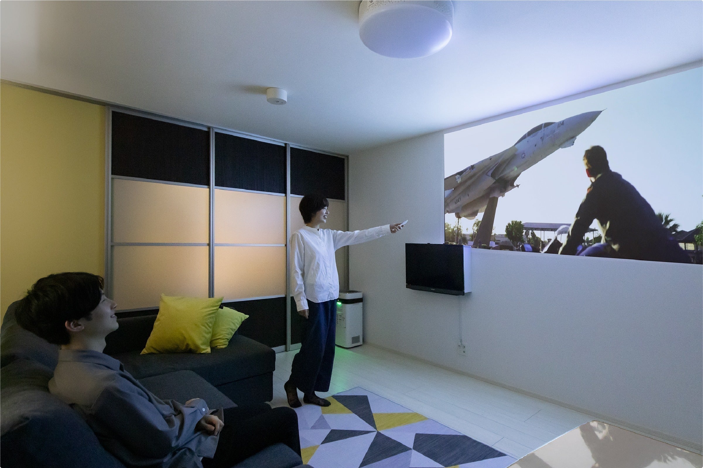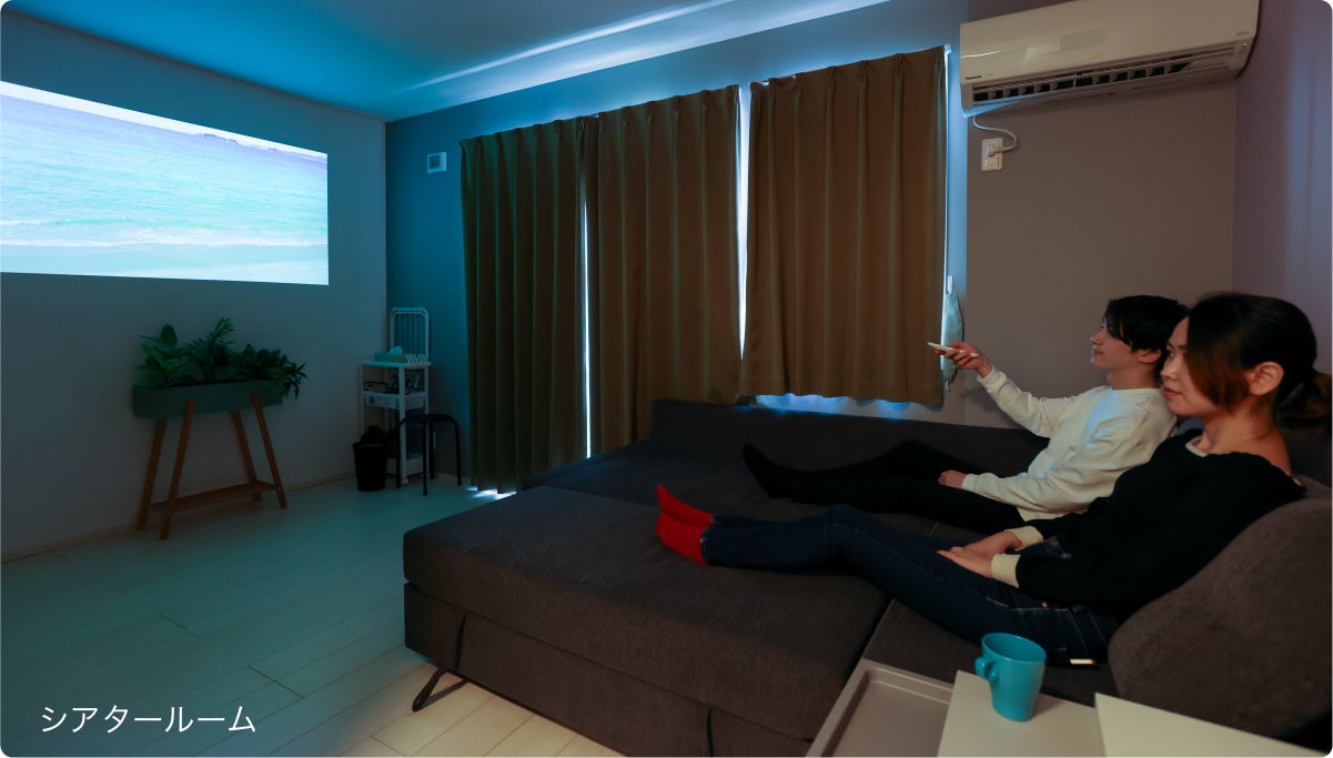 お部屋には70~100インチのプロジェクター完備。アマゾンプライム、youtube対応で映画などをお楽しみいただけます。