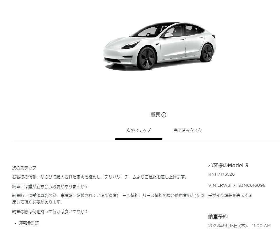 9/15の午前11時、テスラ名古屋ショールームで納車になります。