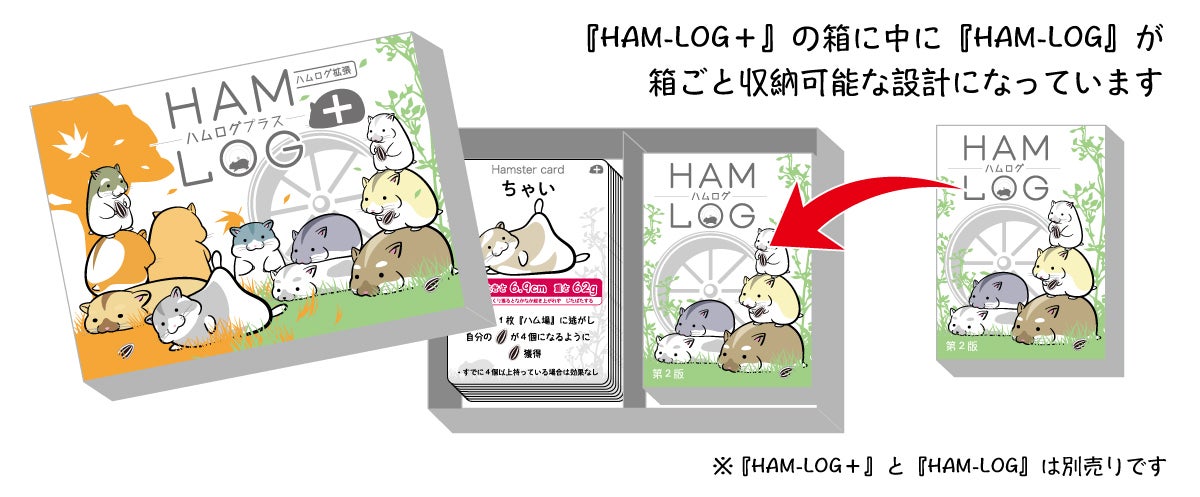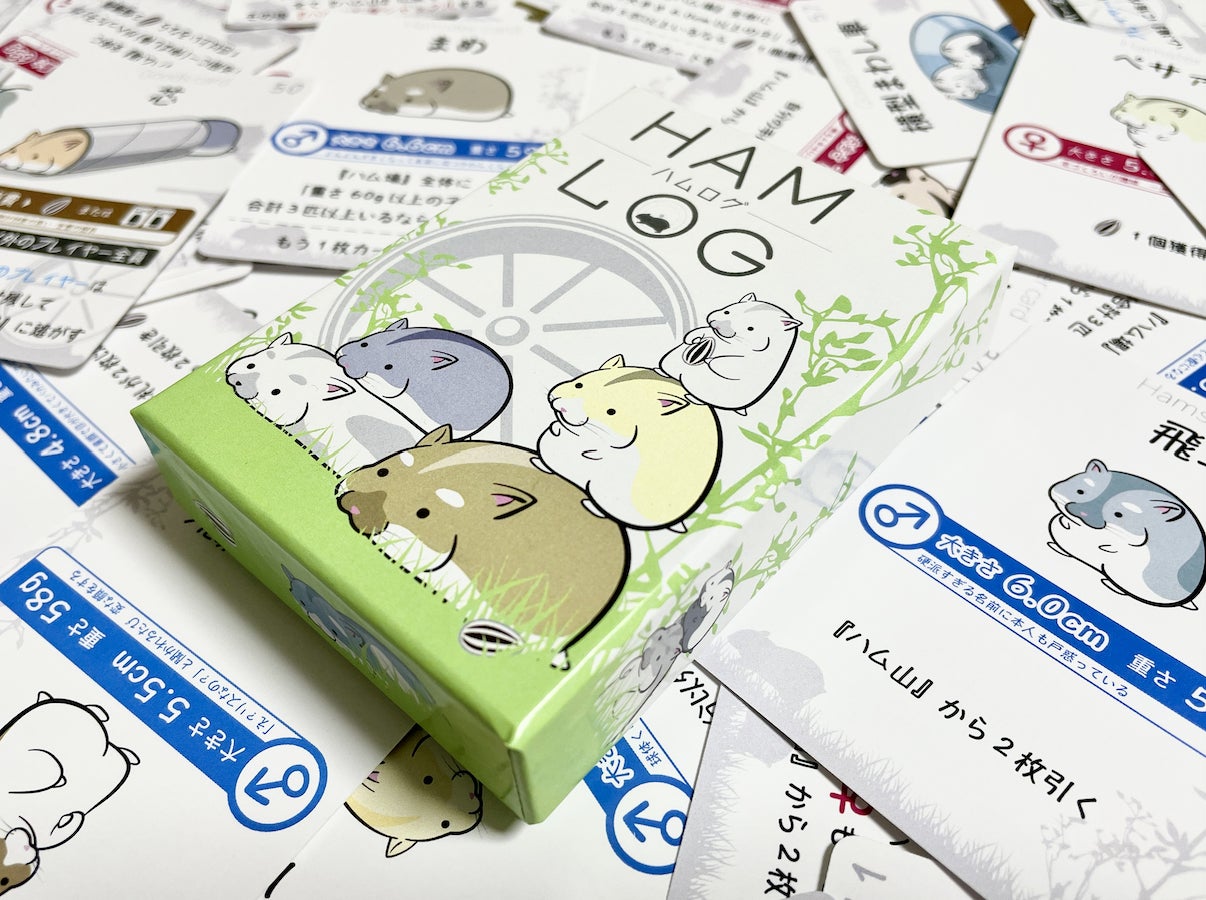 『HAM-LOG』は今年4月の「ゲームマーケット2022春」で発表したカードゲームで、ゲームマーケットとECサイトでの販売わずか3日間で完売し、その後も再販希望のお問い合わせもいただいている「完全オリジナルゲーム」です!