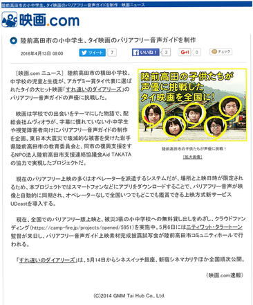 2016/04/14 16:06映画.comにて、今回のプロジェクトについてお取り上げいただきました。 引き続き、応援よろしくお願いします。 もっと見る