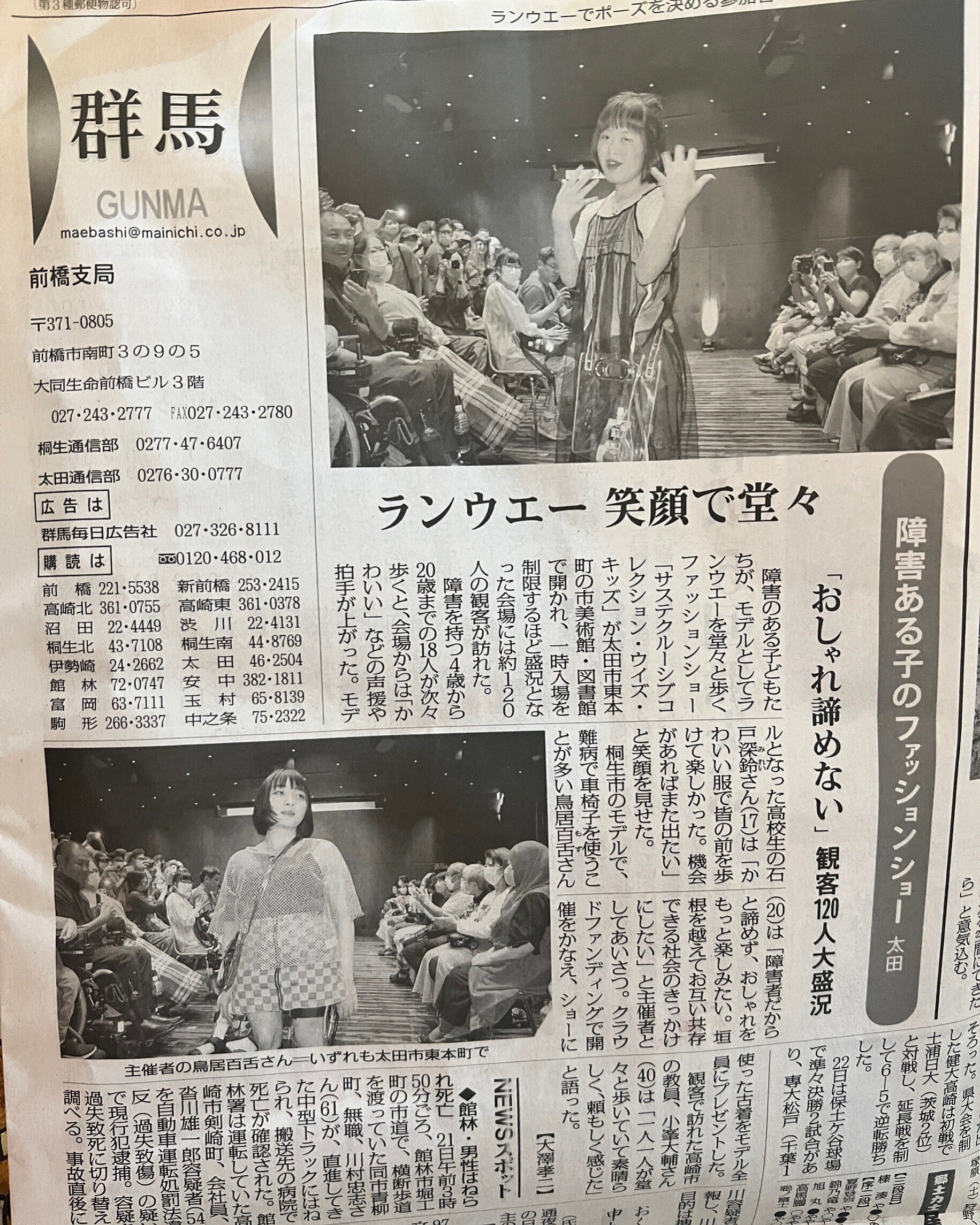 5/21日曜日 群馬県太田市美術館図書館の3階視聴覚室ホールにて、Mary主催として、障害をもっているこどもによる古着ファッションショー“サステクルーシブコレクション”を開催させていただきました。