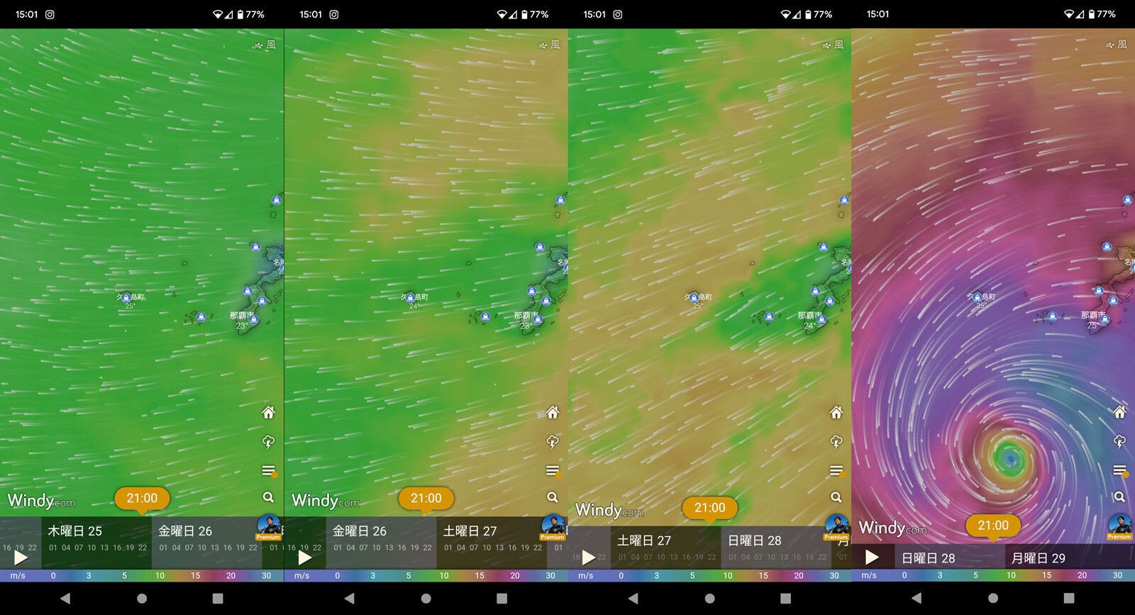 そして、週明けの5/24-27から、いよいよ今季初の沖合でのBlack Water Dive®調査を行う予定です。いや...でした。なぜ始まる前から過去形かと言いますと、昨日、Windyを見ますと、大変残念ですが台風2号がこのあと発生して、28-29日頃に沖縄本島方面にやってくるという予報が出てしまいました。台風の来る数日前からこのあたりは東風が非常に強く吹き始める為、特に沖合では潜れる場所がありません。また帰る予定日だった29日にも台風がある為、このままでは飛行機が飛ばなくて帰れなくなるパターンです。
