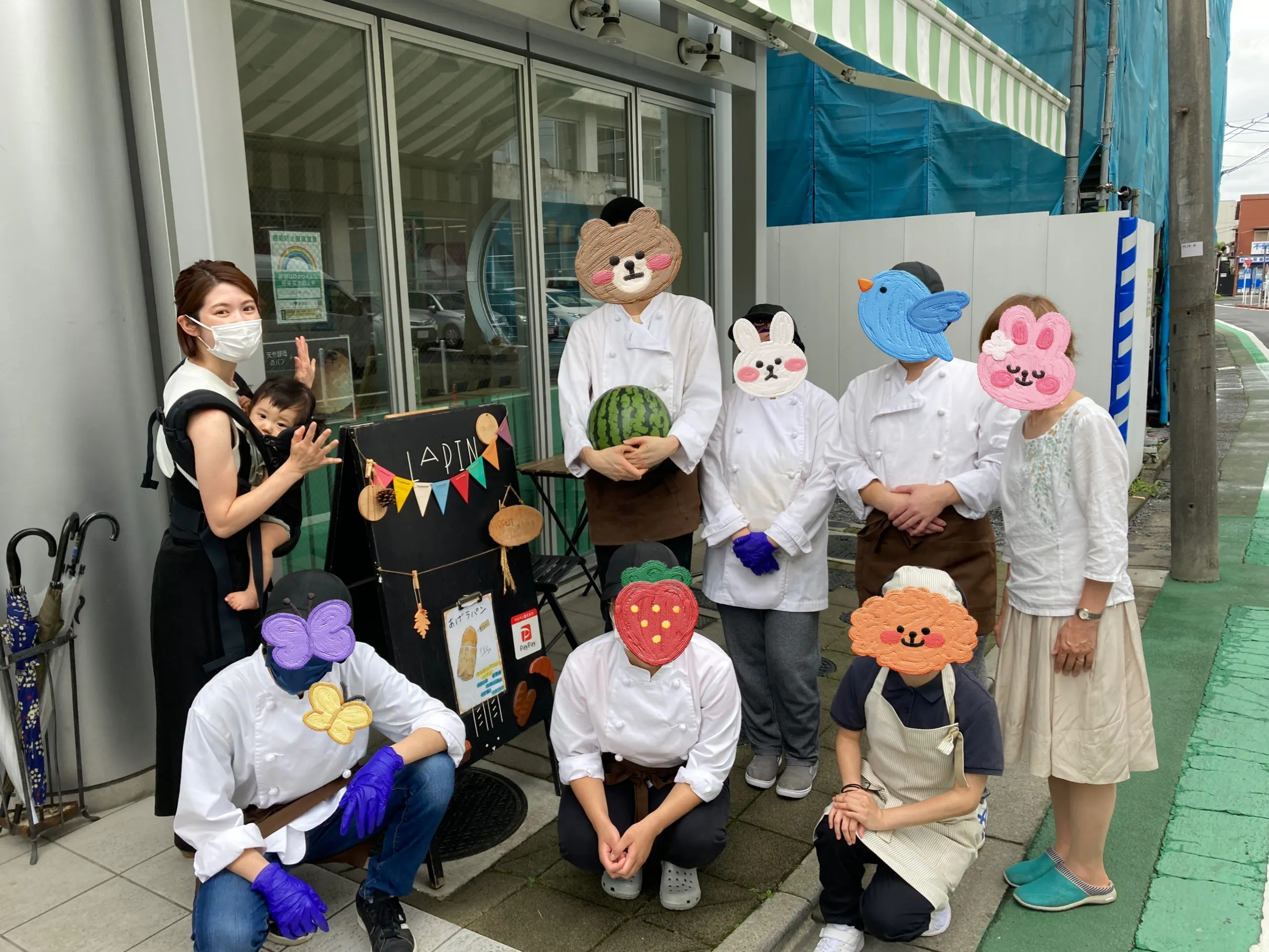 写真は、そのパン屋さんで働く皆さんと撮っていただきました。(東京都府中市内「LAPIN」というパン屋さんです♪)
