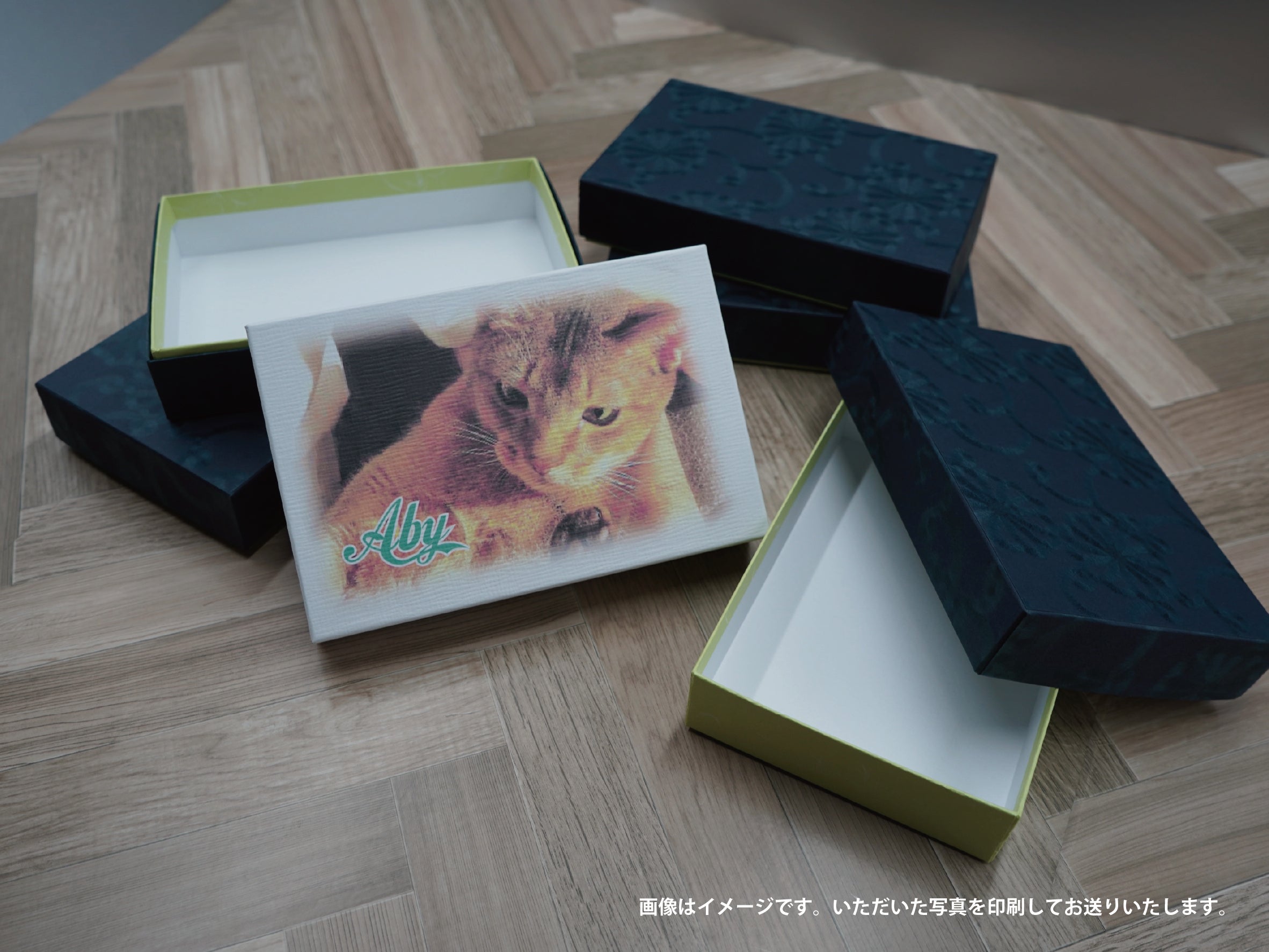 お気に入りの一枚を箱に印刷してお送りいたします。思い出の写真やペットの写真など大切な一枚を形に残してみませんか⁈プレゼントにもオススメです。