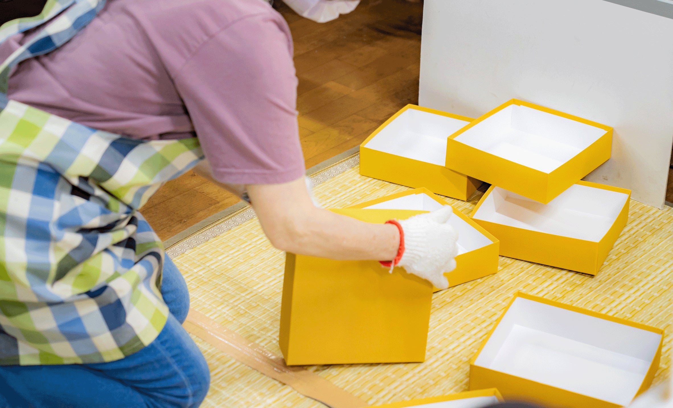このプロジェクトは、取引先が突然廃業してしまった影響で大量の菓子箱が余ってしまった池田屋紙器製作所(以下池田屋)を救うべく生まれました。