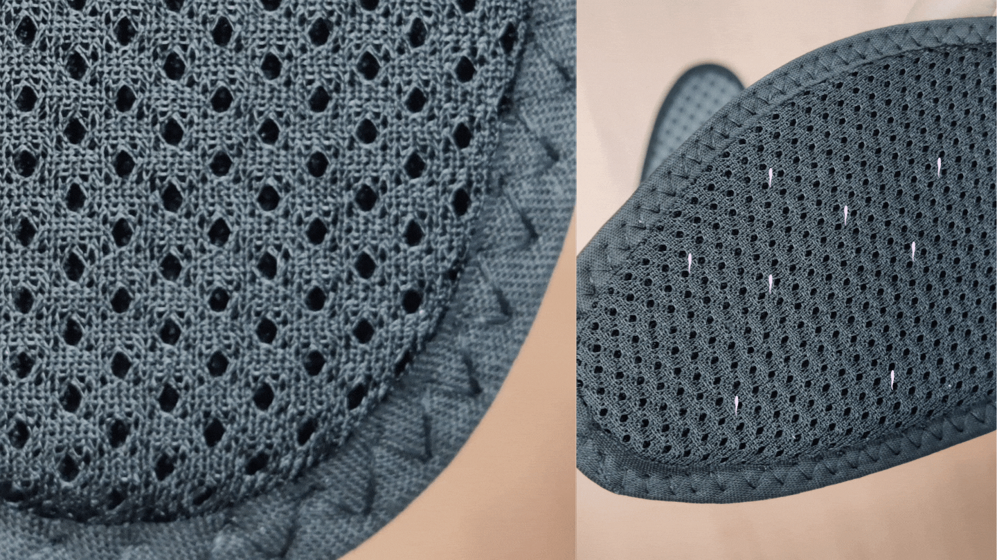 汗の吸収性。クッション性のある編み構造の上層部は、汗を吸収するのに最適な構造になっています。