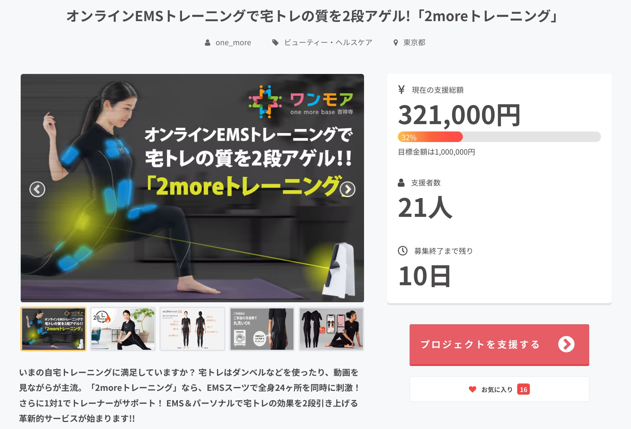 2022/07/22 12:00みなさま、こんにちは。ワンモアベース吉祥寺の高野です。まずはスタート早々ご支援いただきましたすべての方へ、心よりお礼申し上げます。本当にありがとうございます。現時点のご報告です。◆支援総額 ¥321,000-◆達成率 32%◆支援者数 21人多くの方々にご支援いただき、まず最初の目標であった30%を超えることができました。毎日プロジェクトページを見るたびに、「こんなにたくさんの人が応援してくれている!」と、とても元気づけられています。大変嬉しく、感謝の気持ちでいっぱいです。ありがとうございます!クラウドファンディングと併行して、店舗の工事も着々と進んでおります!外観をリニューアル中!トレーニングルームの壁がまず仕上がりました!これからさらに床、天井と続きます!キッズルームはこれから・・・もう少ししたらお披露目しますね!クラウドファンディング終了まで残り9日となりました。みなさまのおかげで、「一層頑張っていこう!」という気持ちが強くなっております。本当にありがとうございます!引き続き、SNSや口コミでの情報拡散、ご支援のほど、何卒よろしくお願いいたします。 もっと見る