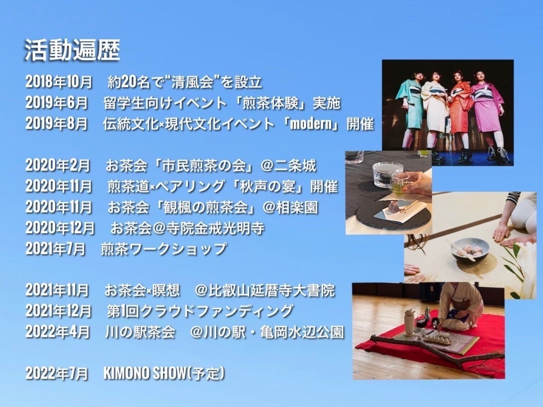 私たち清風会の活動目的は、若い人に日本の伝統文化の素晴らしさを知ってもらうこと・日本文化を継承することです。