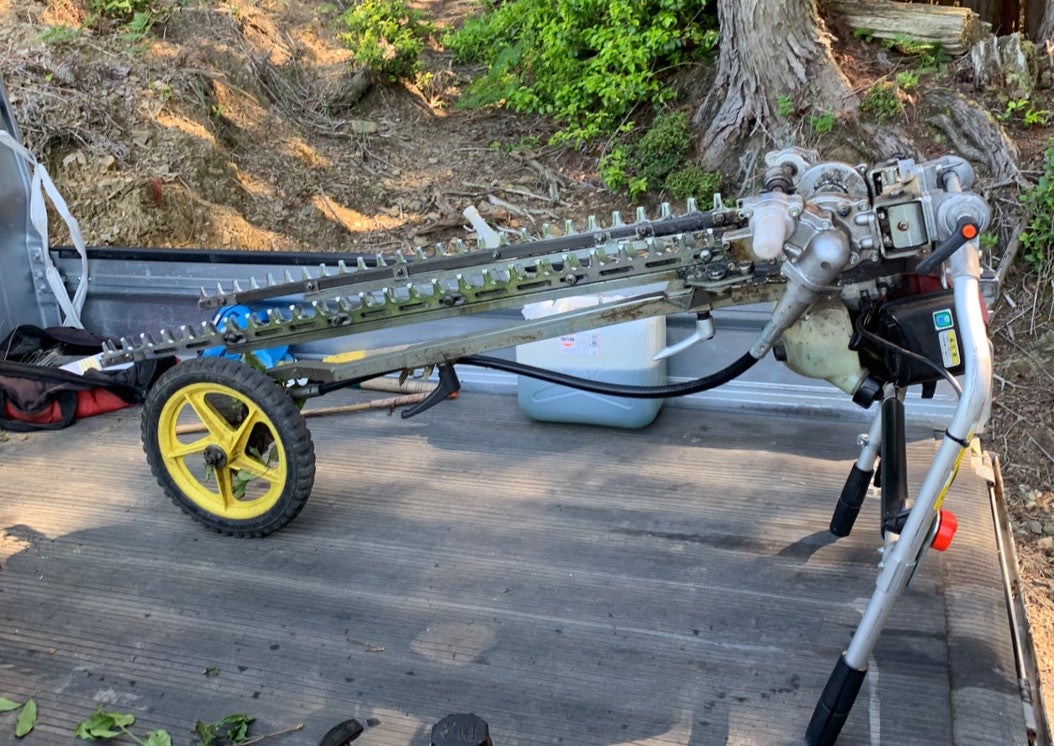 ・お茶を植え替えるための準備を行います。植え替えられるのは弱ってきたり成長が悪いもので、それらを草刈機やショベルカーを使って除去します。