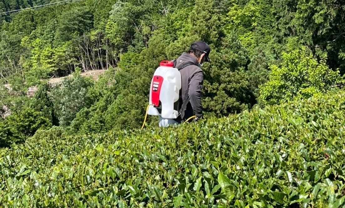 ・肥料をやる頻度や量は茶農家によってさまざまですが、細井農園さんはこだわりを持って少量を毎月、さらに機械を使わずに全て手作業で肥料を撒いているそうです。