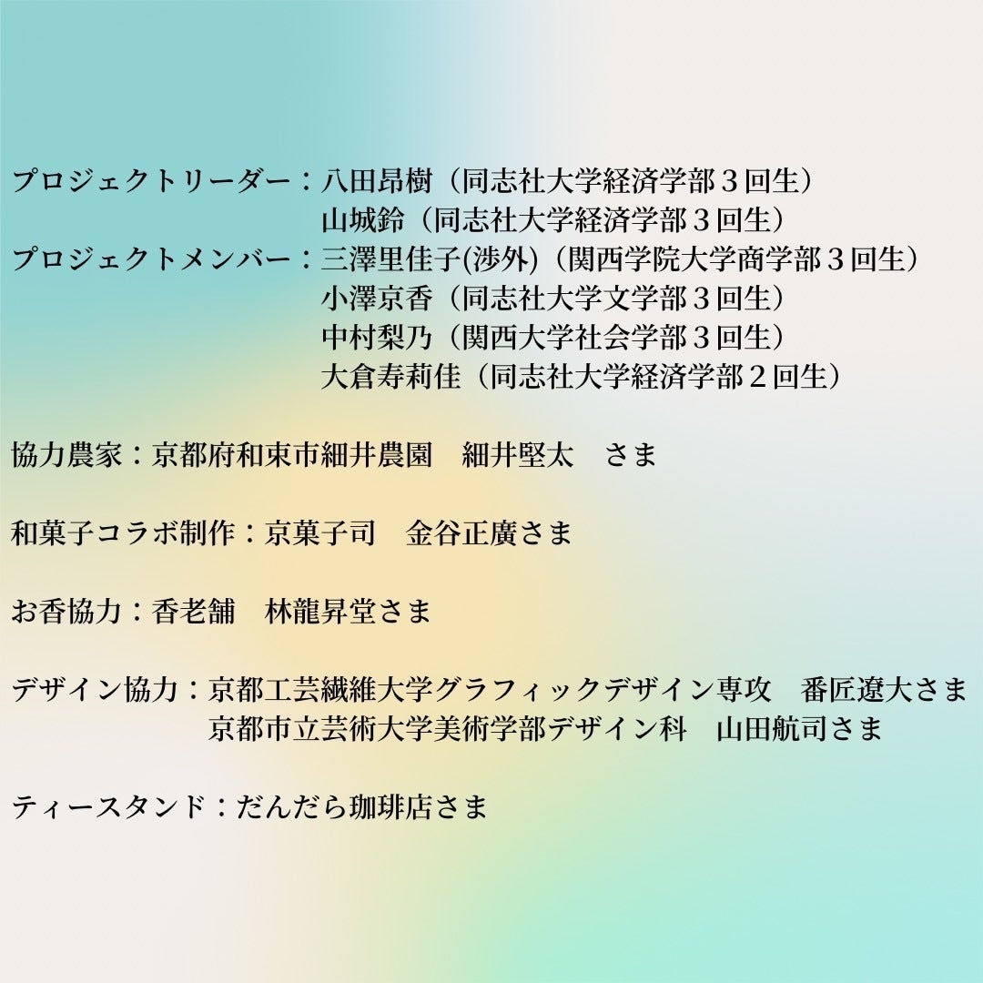 今年度は、毎日お茶を嗜み、SNSでその魅力を発信しておられる京都府和束町にある細井農園の細井堅太様にご協力いただき、活動していきます。