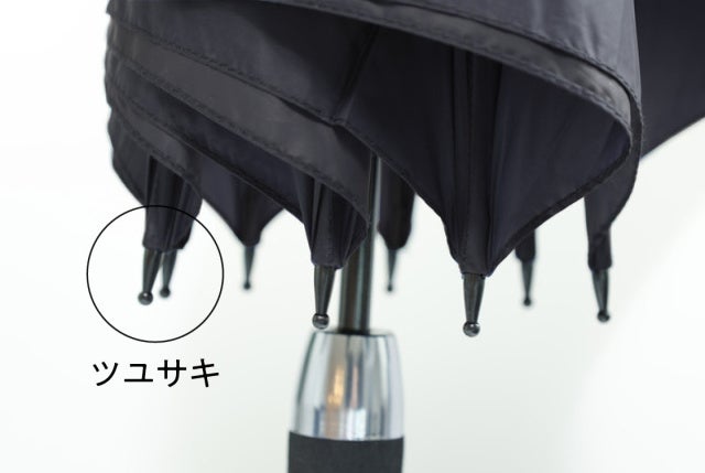 ①傘を開いた先端部分のツユサキを鉄からABS素材に変更し、軽量化を目指しました。