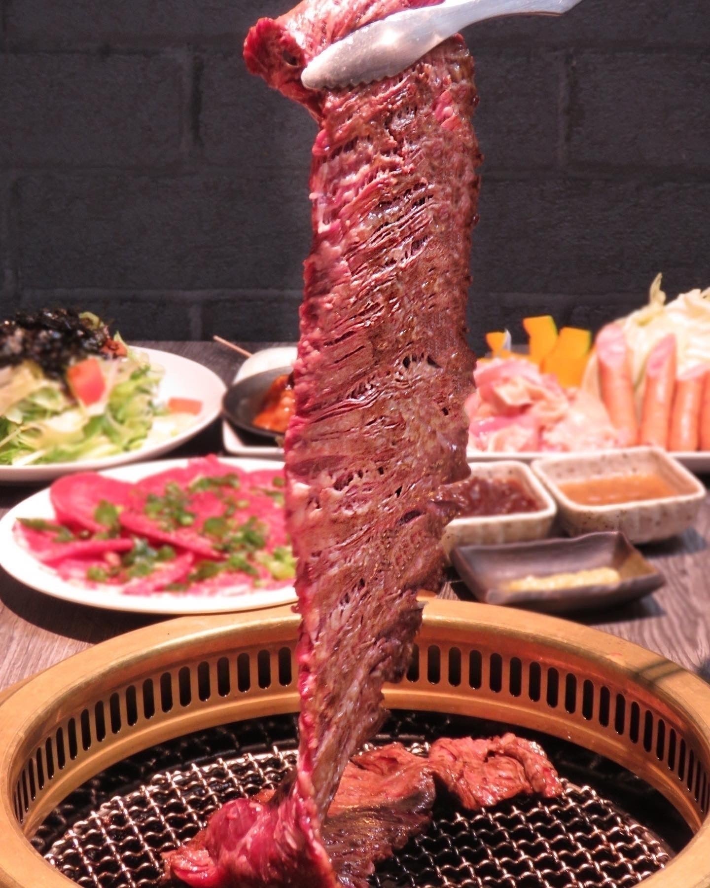 豪快に牛ハラミを丸ごと一本焼いていただきます!